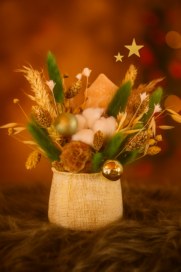 Laat je betoveren door de magie van kerst met onze unieke droogbloemcreaties. Met liefde en oog voor detail samengesteld, brengen onze arrangementen een sfeervolle, duurzame twist aan jouw kerstdecoratie.